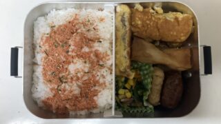 今日は揚げ物作ったちくわの磯辺揚げ。冷食じゃない。自分で揚げた。久々に衣つけて、油で揚げる。手間かかる。でも、たまにはいいわ。ふりかけごはんごはんにふりかけ。たっぷりかける。海苔と胡麻の香り。いつもの味。安定してる。ふりかけあれば、おかず少...