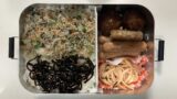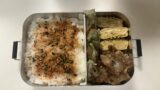 ごはん詰めて、ふりかけかけて、おかず詰める。