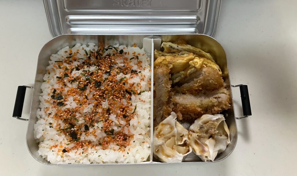 お弁当作りの強い味方といえば、前日の夕食の残り物です。今回は昨晩のとんかつを活用して、効率的にお弁当を仕上げました。残り物を使うことで、朝の調理時間をぐっと短縮しながらも、しっかりとしたメインおかずが入った満足度の高いお弁当が完成しました。